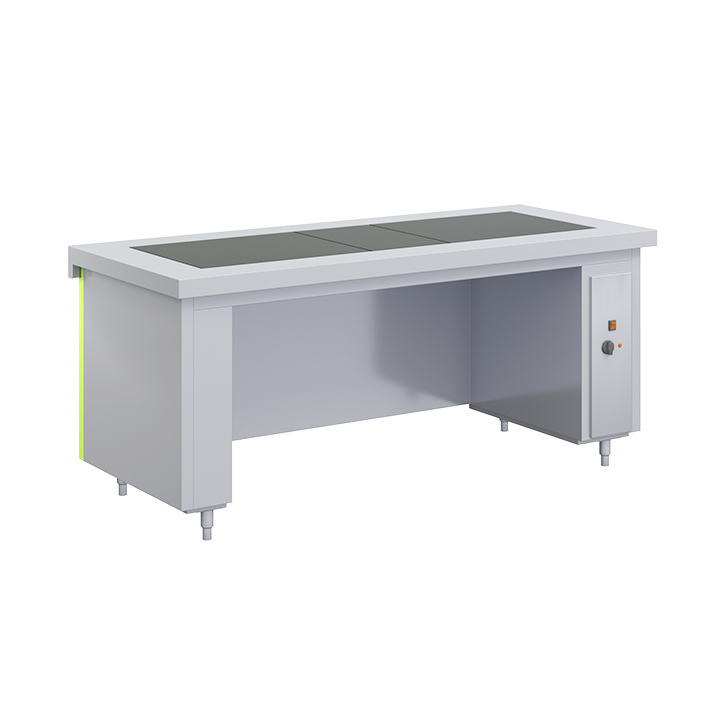 - Dessus équipé d'une plaque chauffante 1 GN 1/1 et une plaque chauffante 2 GN 1/1 en verre trempé avec tapis chauffants