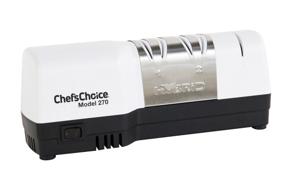 - Affilage en deux étapes, la première électique complétée par l'affûtage manuel avec le concept Chef's Choice de double biseaux plus durable